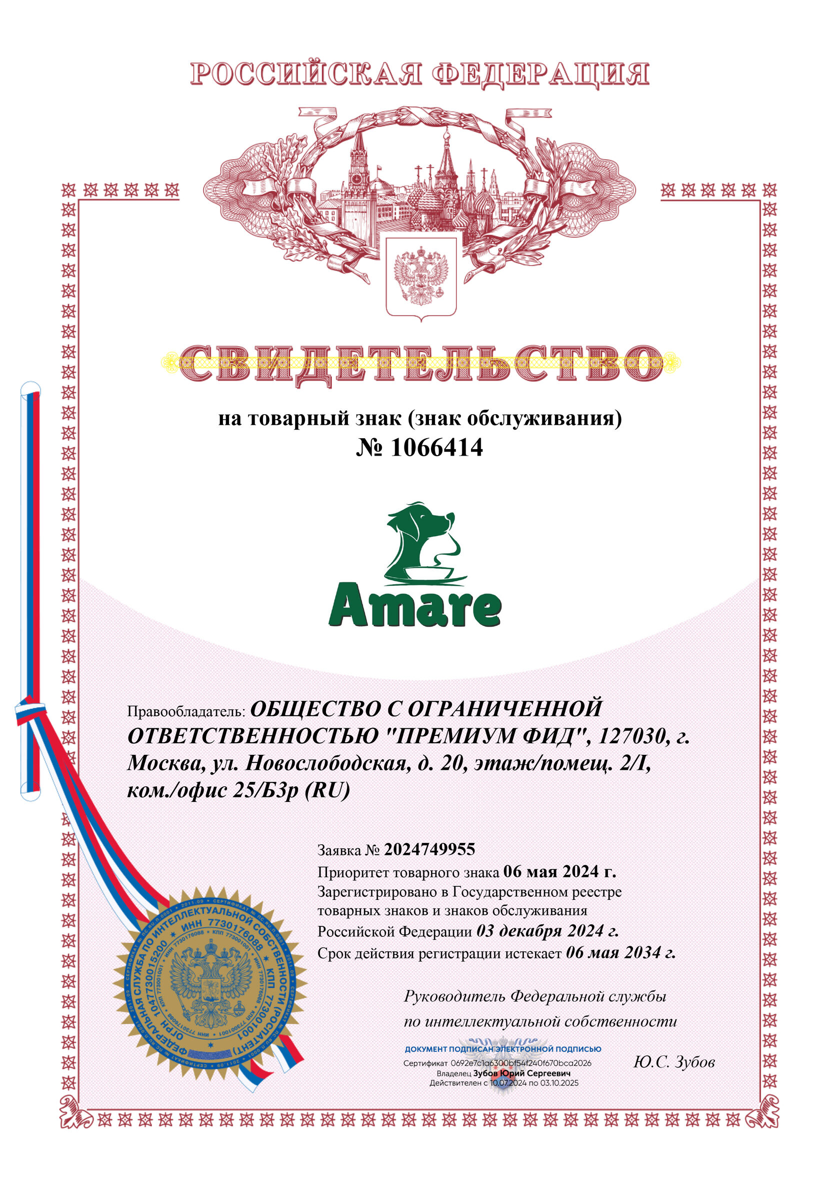 Amare – современный отечественный производитель здоровых и сбалансированных кормов для кошек и собак всех пород.